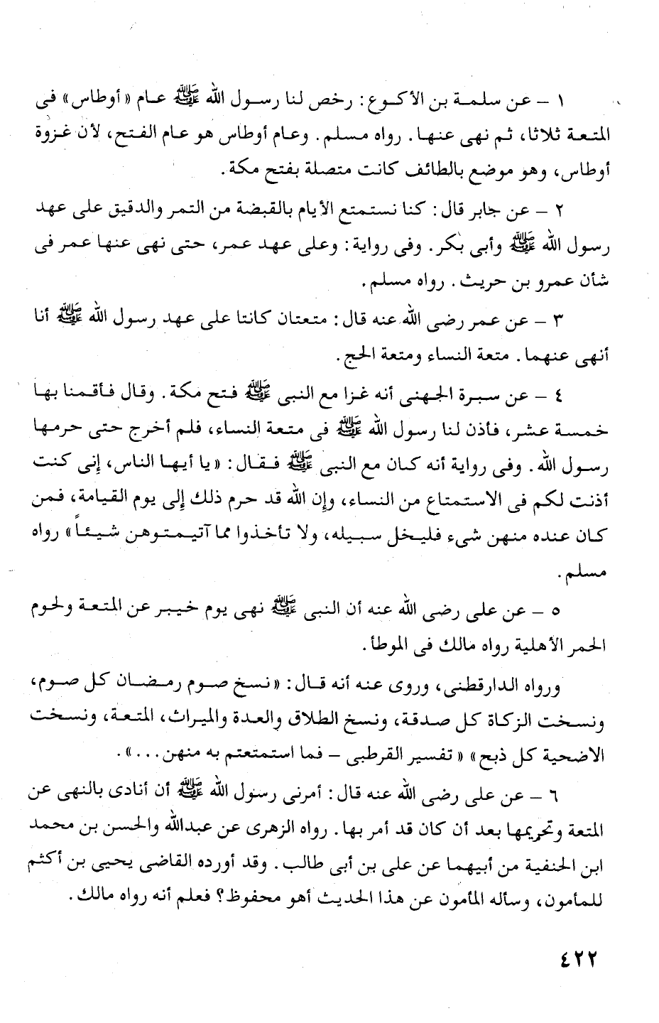 5 - عن على رضى الله عنه أن النبى ص! هته نهى يوم خيبر عن المتعة ولحوم