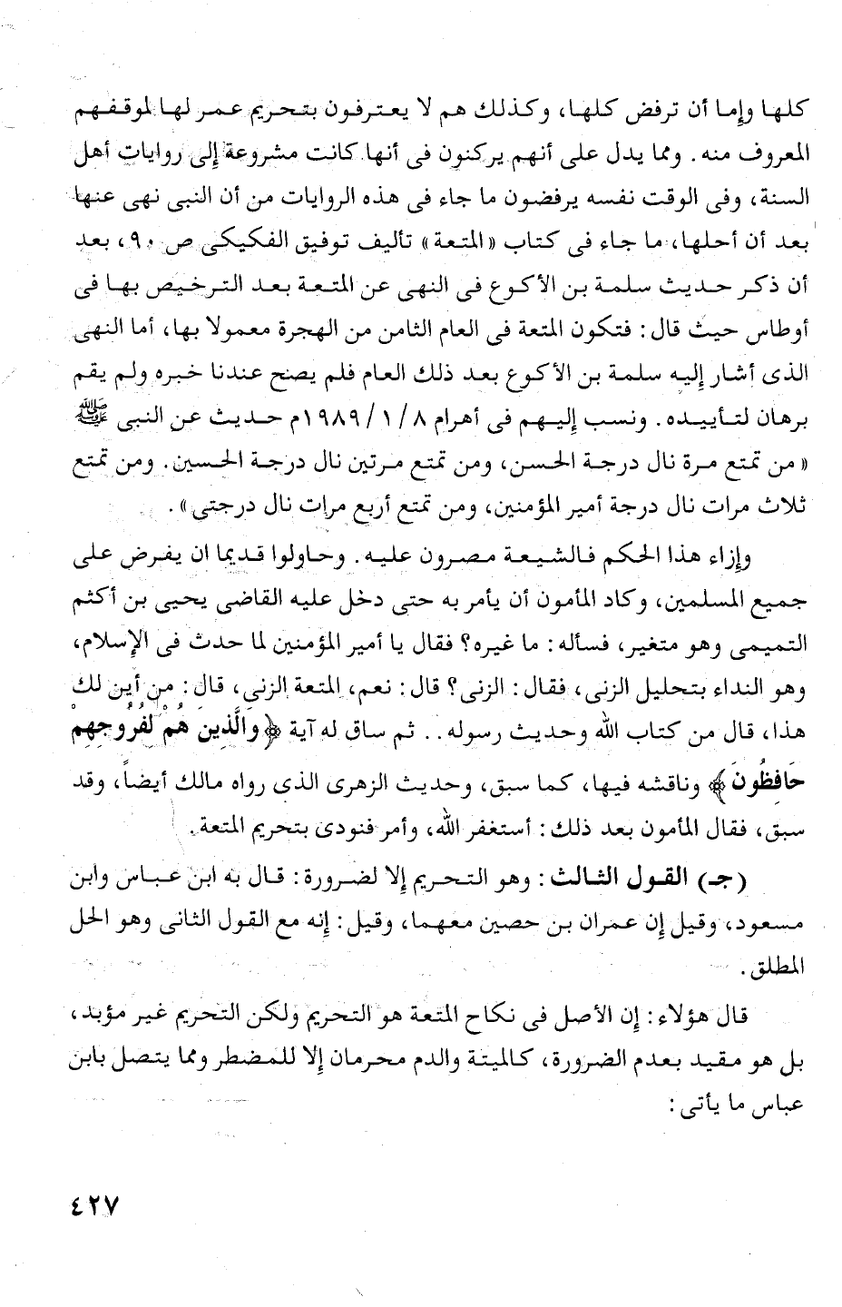هذا، قال من كتاب الله وحديث رسوله. . ثم ساق له آية (والذين همء لفروجهم