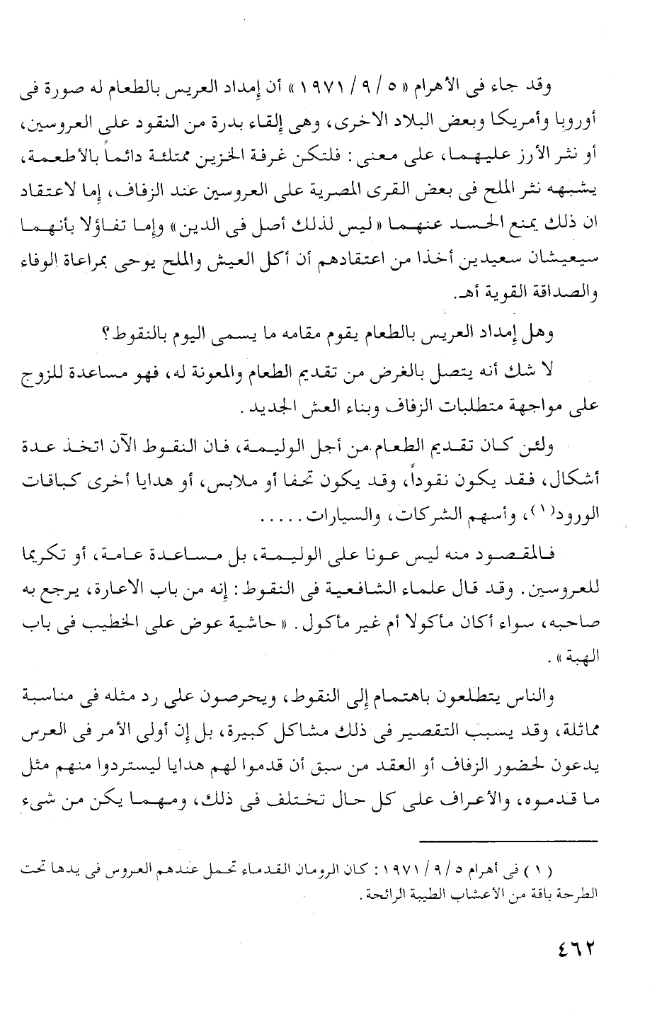 وقد جاء فى الا! هرام " 5 1 9 1 971 1 " أن إمداد العريس بالطعام له محمورة فى
