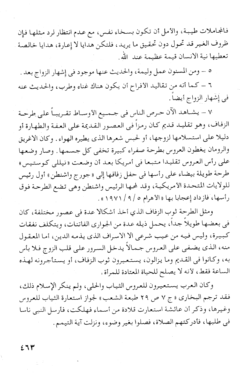 وكان العرب يستعيرون للعروس الثياب والحلى، ولم ينكر الإسلام ذلك،