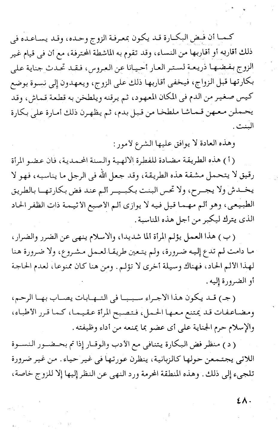 (د) منظر فض البكارة يتنافى مع الأ دب والوقار إذا تم بحضور الن! سوة