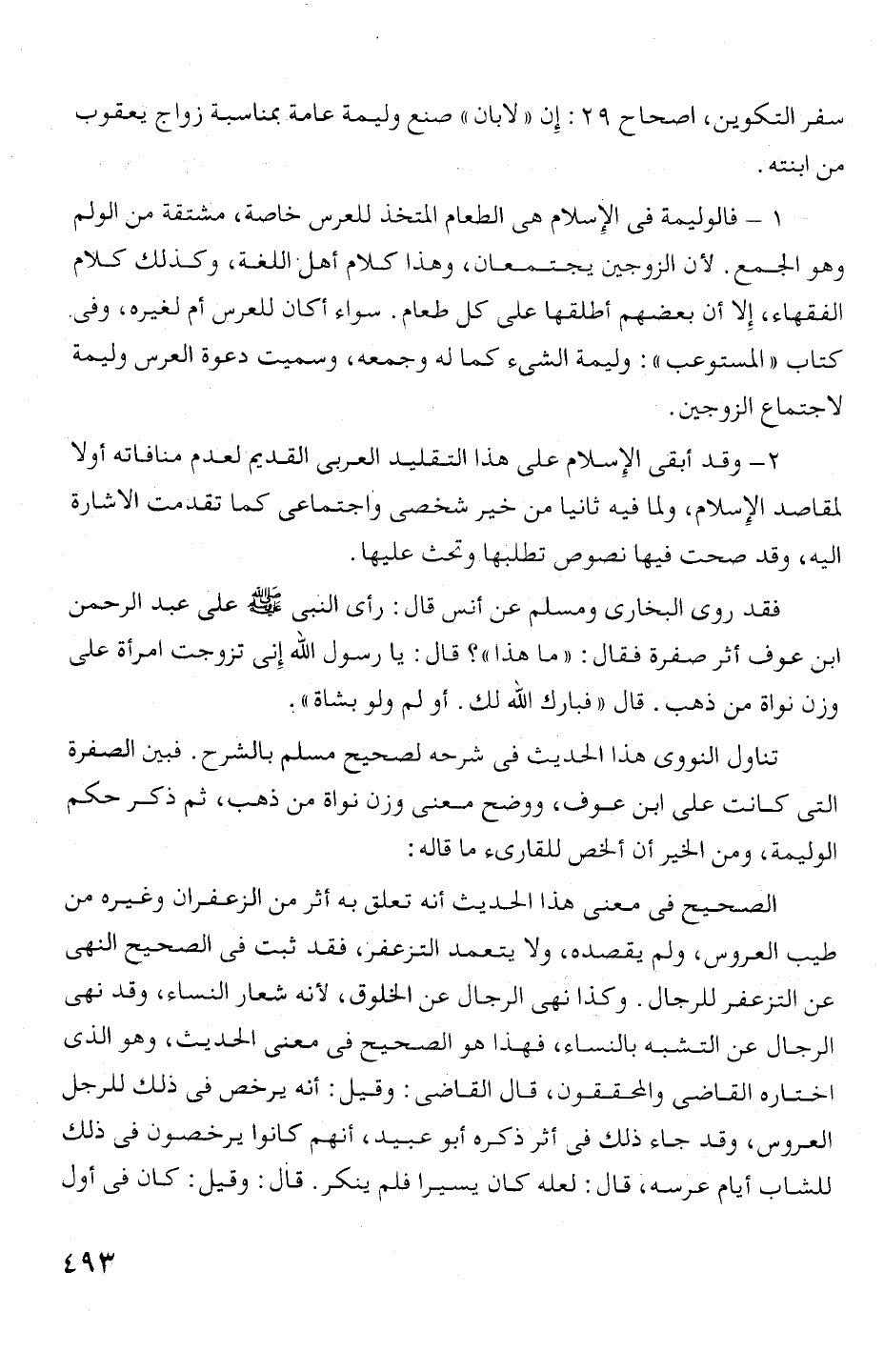 التى كانت على ابن عوف، ووضح معنى وزن نواة من ذهب، ثم ذكر حكم