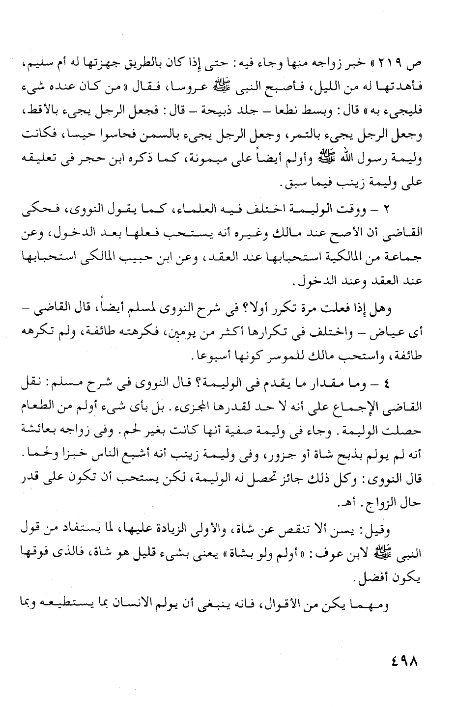 أنه لم يولم بذبح شاة أو جزور، وفى وليمة زينب أنه أشبع الناس خبزا ولحما.