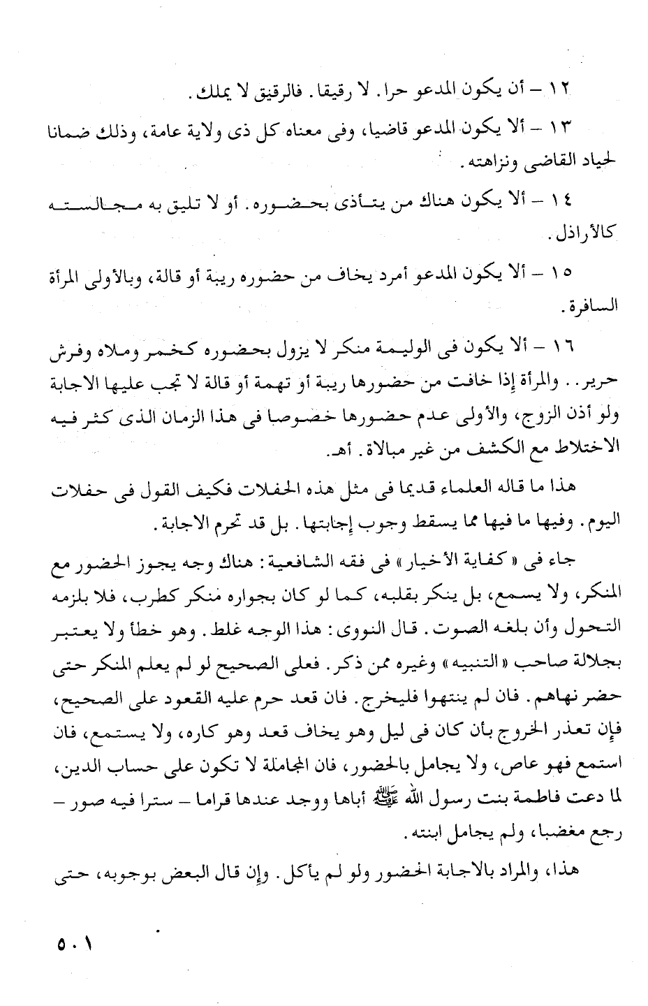 6 1 - ألا يكودن فى الوليمة من! ص لا يزول بحضوره كخمر وملاه وفرش