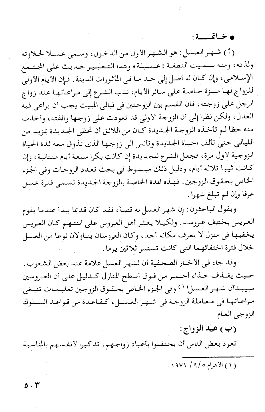 (أ) شهر العسل: هو الشهر الم! ول من الدخول، وسمى عسلا لحلاوته