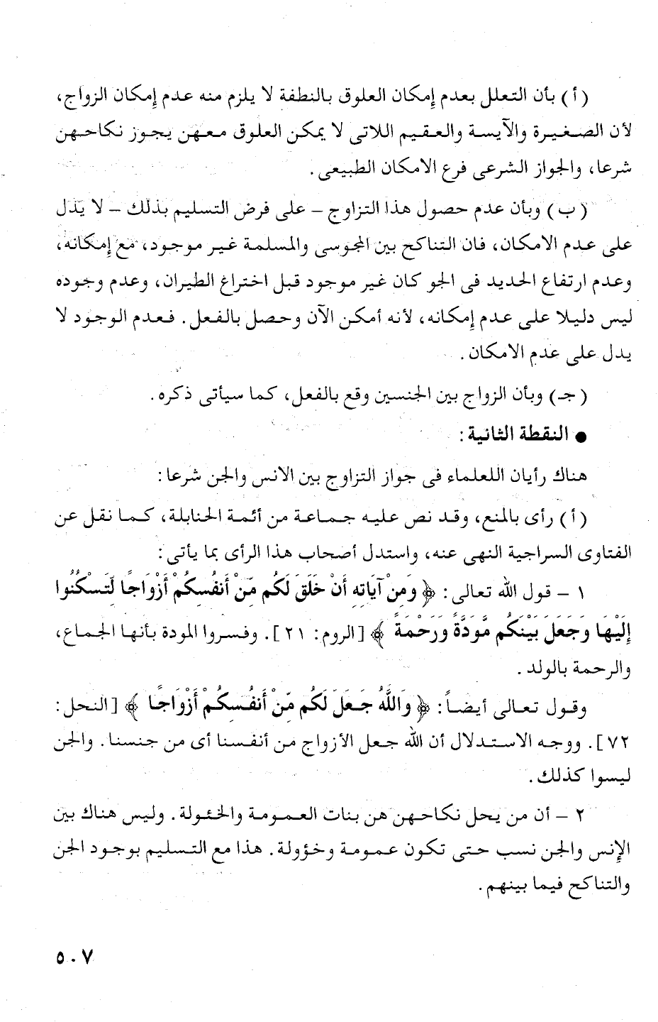 72،. ووجه الاستدلال أن الله جعل الا! زواج من أنفسنا أى من جنسنا. والجن
