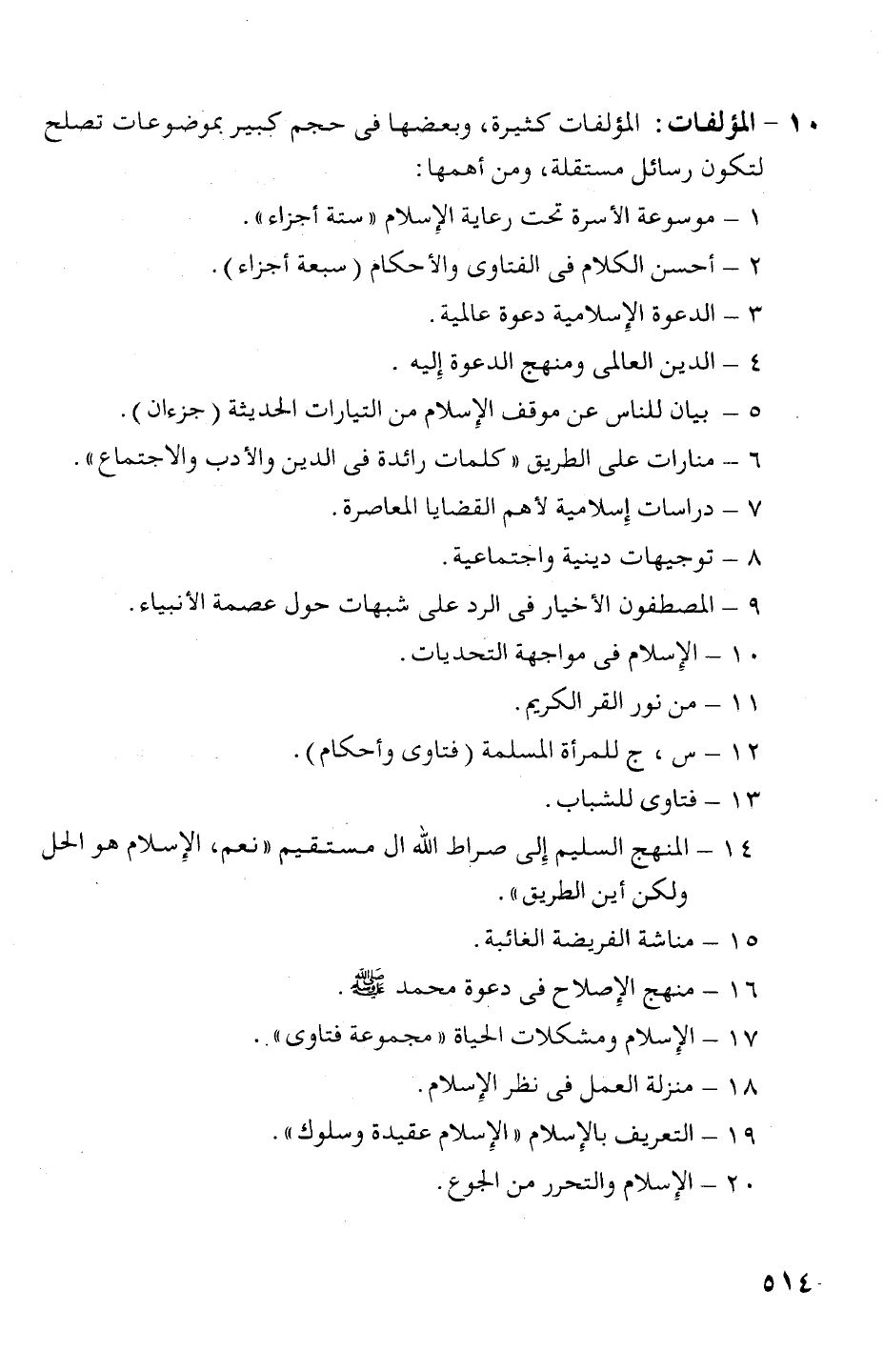 10 - المؤلفات: المؤلفات كثيرة، وبعضها فى حجم كبير بموضوعات تصلح