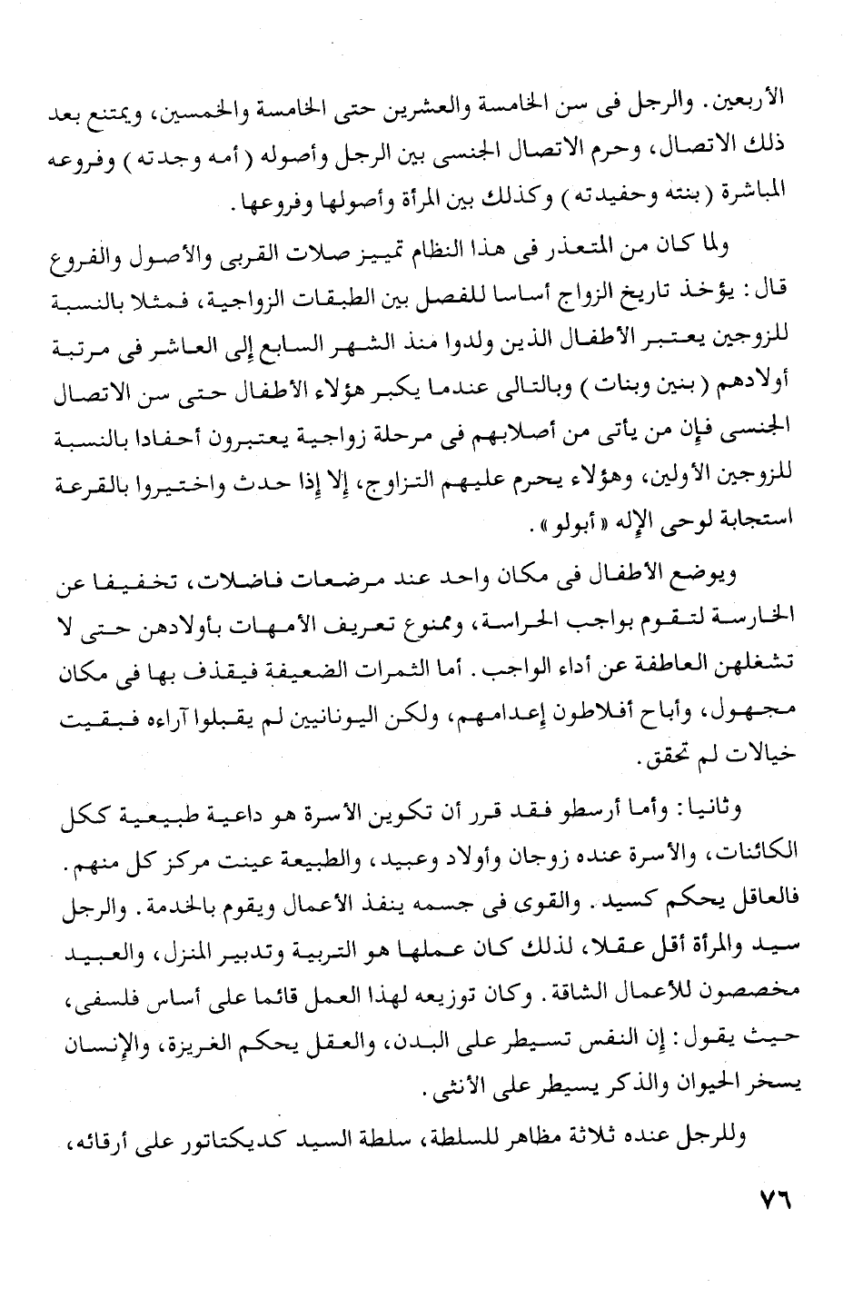 وثانيا: وأما أرسطو فقد قرر أن تكوين الأسرة هو داعية طبيعية ككل