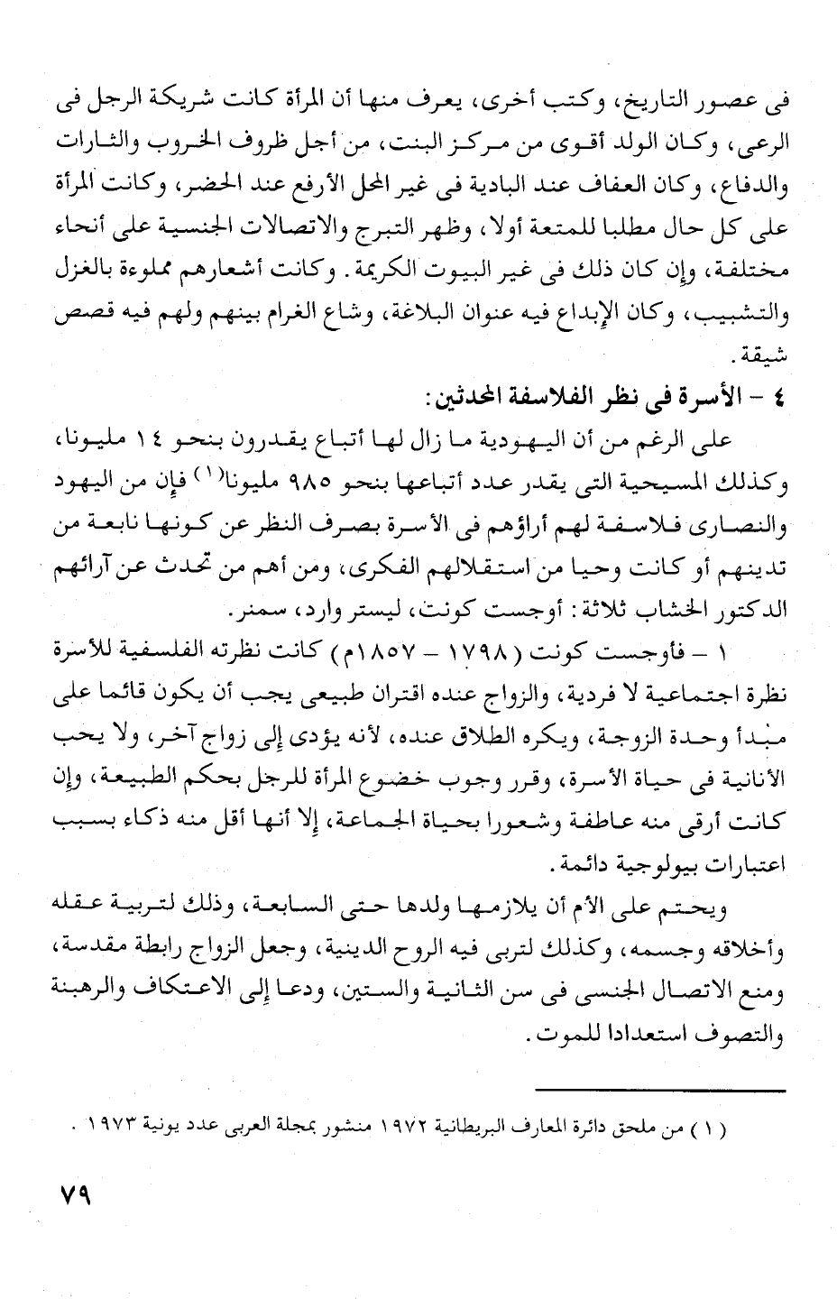 أ - فأوجست كونت (98 ل! أ - 857 أم) كانت نظرته الفلسفية للاسرة