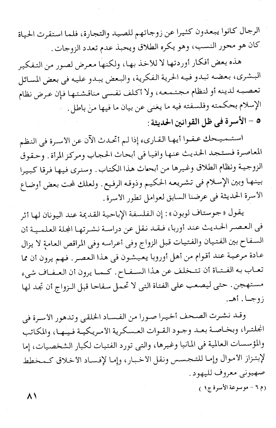 الزوجية ونظام الطلاف وغيرها من أبحماث هذا الكتاب. وسنرى فيها فرقا كبيرا