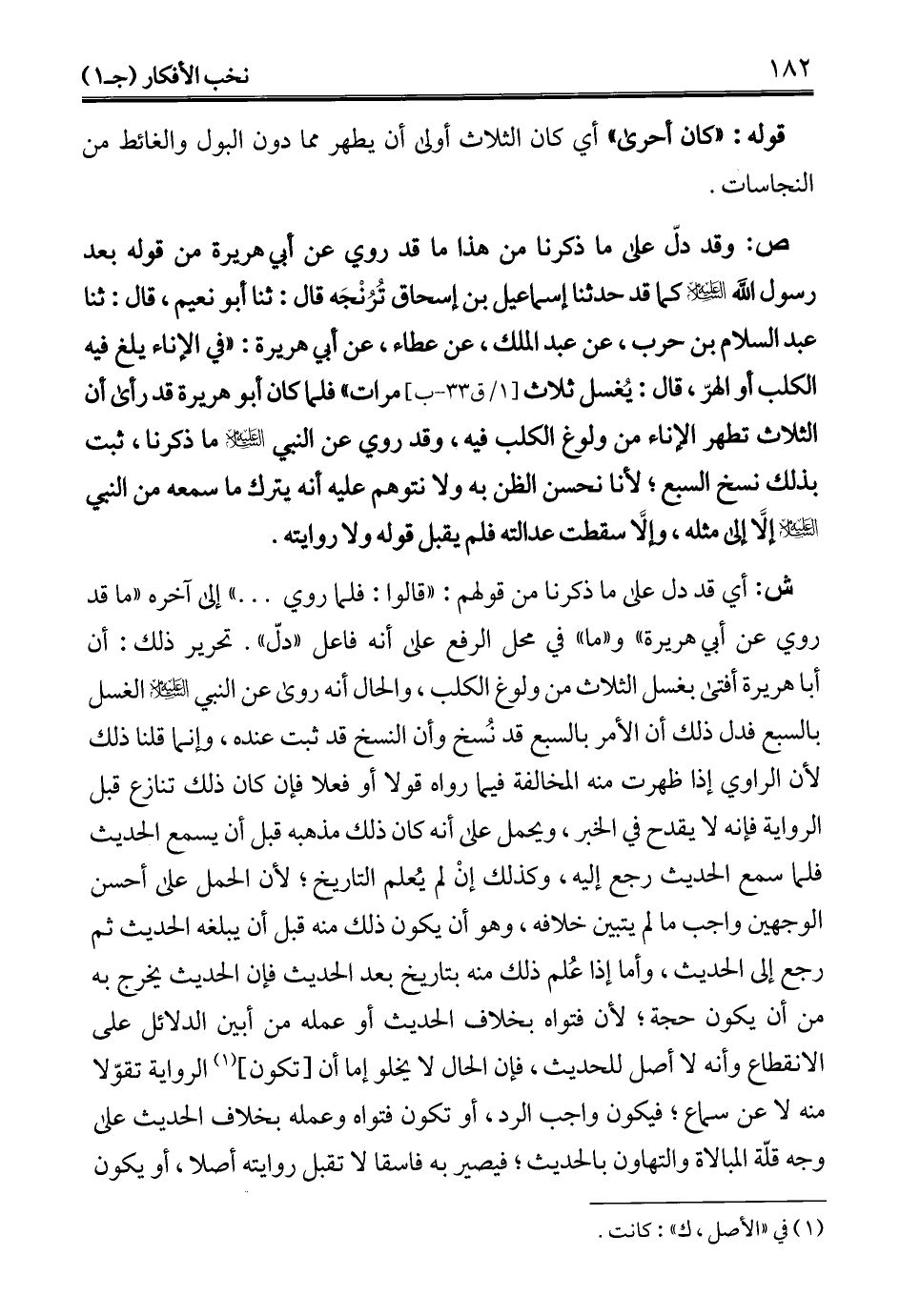 ص: وقد دلّ على ما ذكرنا من هذا ما قد روي عن أبي هريرة من قوله بعد رسول الله - عليه السلام - كما قد حدثنا إسماعيل بن إسحاق تُرُنْجَه قال: ثنا أبو نعيم، قال: ثنا عبد السلام بن حرب، عن عبد الملك، عن عطاء، عن أبي هريرة: "في الإناء يلغ فيه الكلب أو الهرّ، قال: يُغسل ثلاث مرات" فلما كان أبو هريرة قد رأى أن الثلاث تطهر الأناء من ولوغ الكلب فيه، وقد روي عن النبي - عليه السلام - ما ذكرنا، ثبت بذلك نسخ السبع؛ لأنا نحسن الظن به ولا نتوهم عليه أنه يترك ما سمعه من النبي - عليه السلام - إلَّا إلي مثله، وإلَّا سقطت عدالته فلم يقبل قوله ولا روايته.