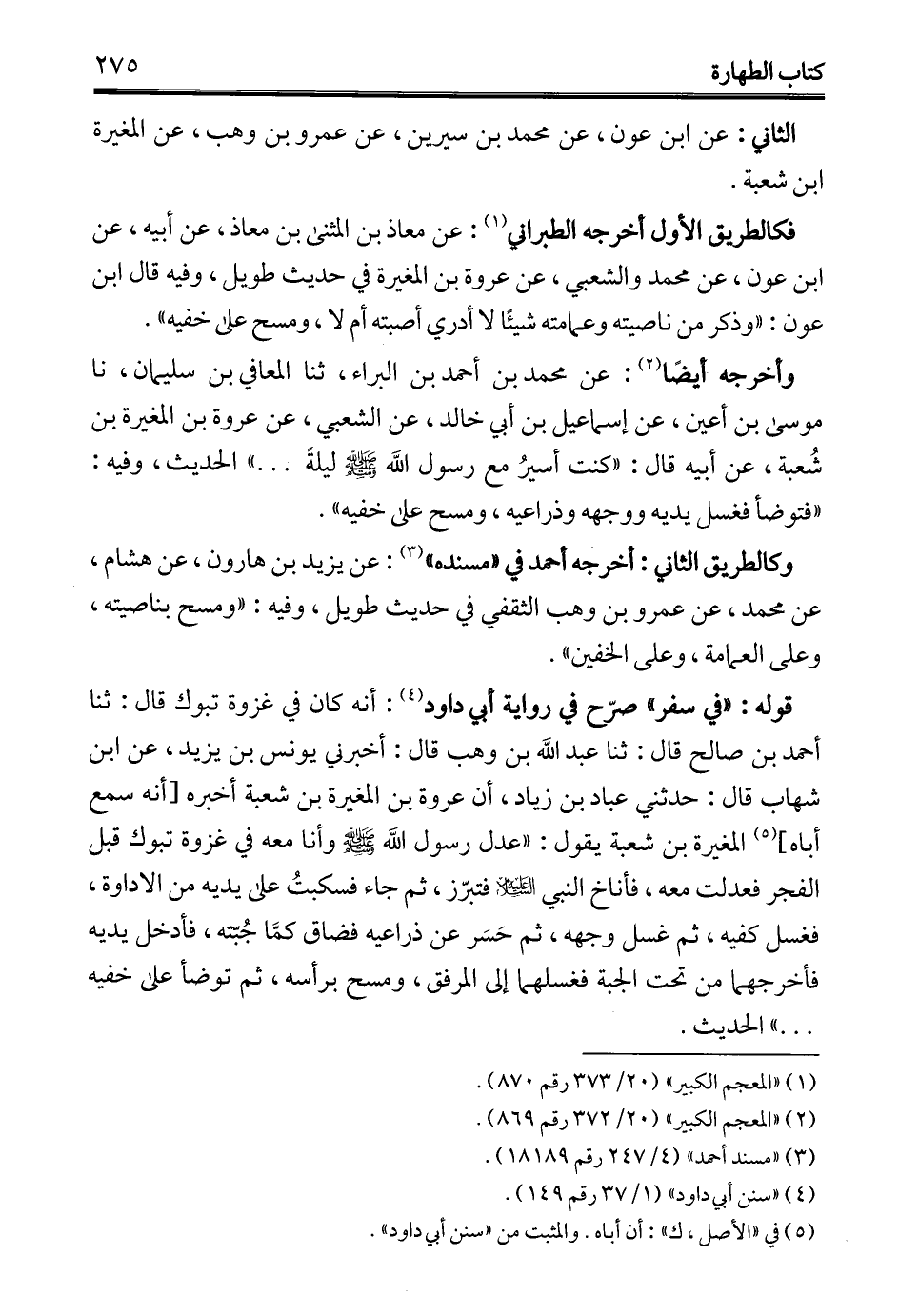 فكالطريق الأول أخرجه الطبراني (¬1): عن معاذ بن المثنى بن معاذ، عن أبيه، عن ابن عون، عن محمَّد والشعبي، عن عروة بن المغيرة في حديث طويل، وفيه قال ابن عون: "وذكر من ناصيته وعمامته شيئًا لا أدري أصبته أم لا، ومسح على خفيه".
