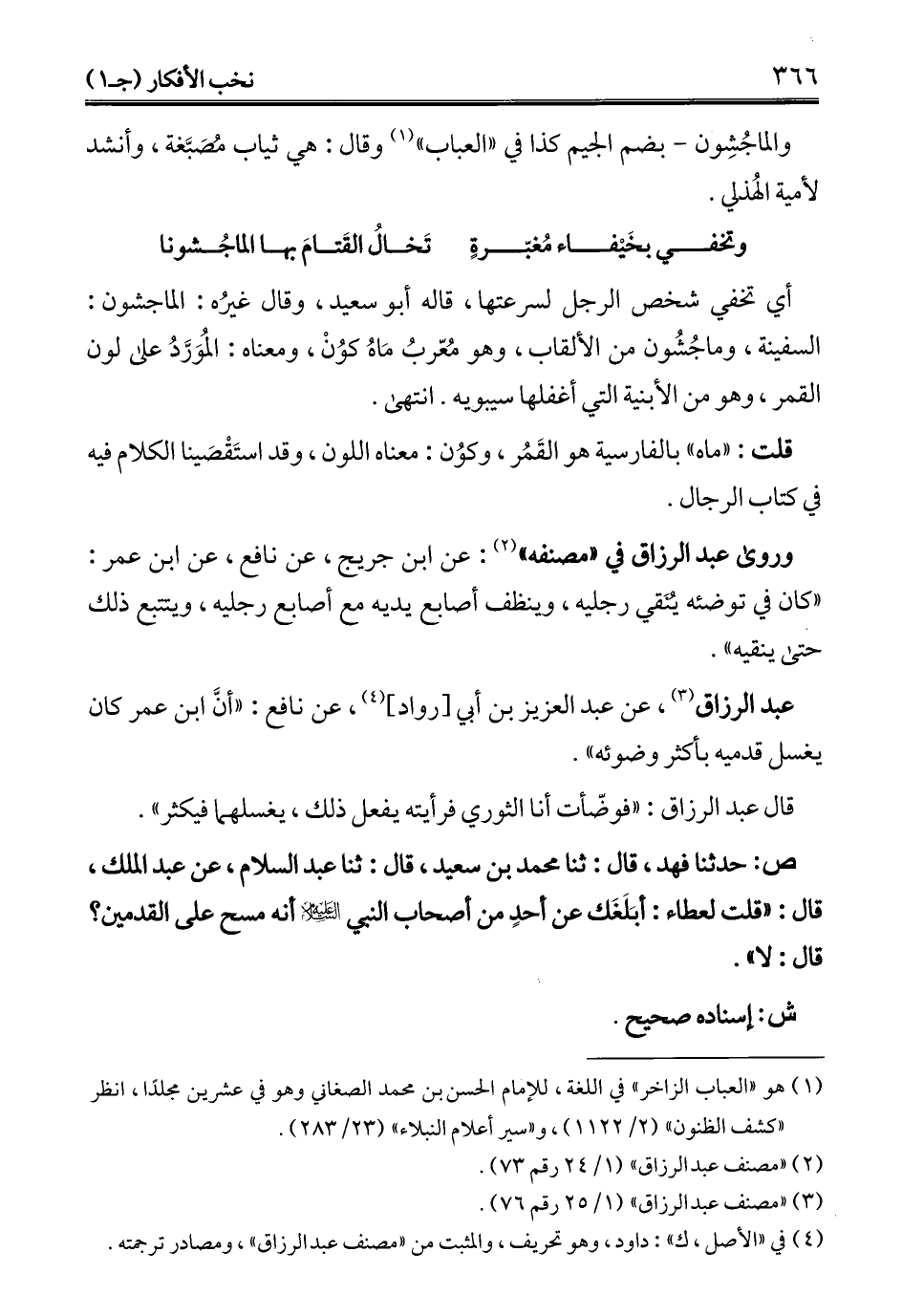 عبد الرزاق (¬3)، عن عبد العزيز بن أبي [رواد] (¬4)، عن نافع: "أنَّ ابن عمر كان يغسل قدميه بأكثر وضوئه".