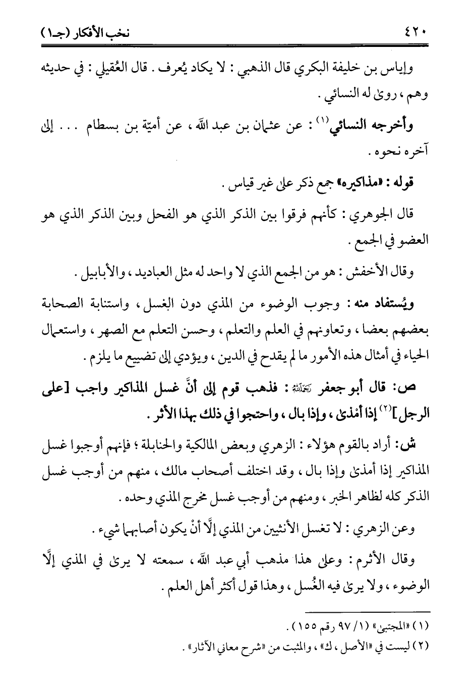 ص: قال أبو جعفر -رحمه الله-: فذهب قوم إلى أنَّ غسل المذاكير واجب [على الرجل] (¬2) إذا أمْذى، وإذا بال، واحتجوا في ذلك بهذا الأثر.