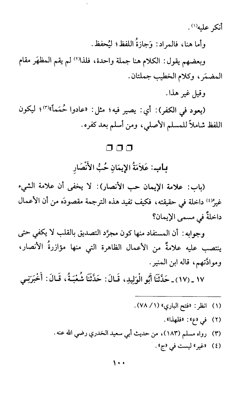 باب: عَلاَمَةُ الإيمَانِ حُبُّ الأَنْصَارِ
