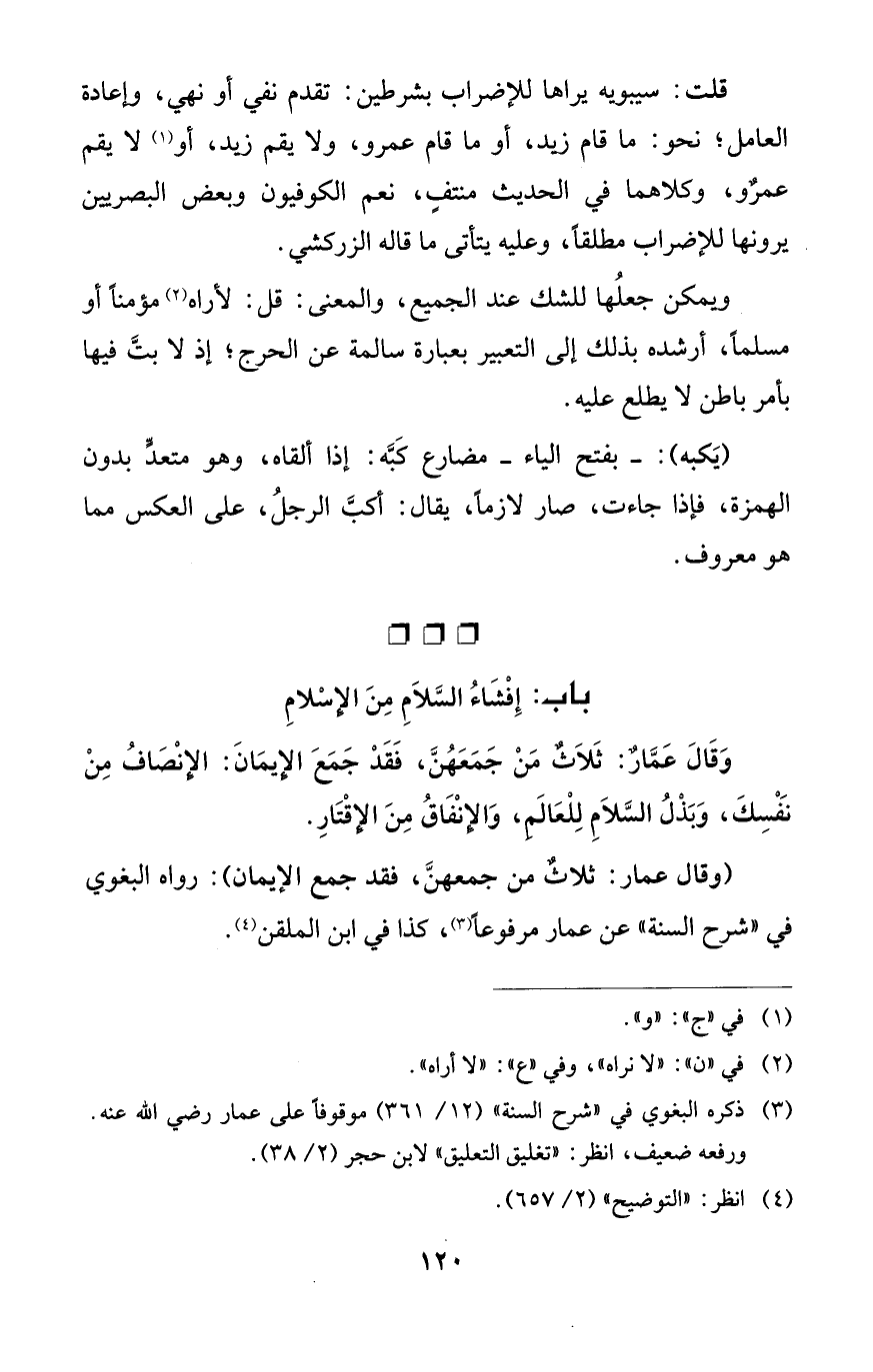 (وقال عمار: ثلاثٌ من جمعهنَّ، فقد جمع الإيمان): رواه البغوي في "شرح السنة" عن عمار مرفوعًا (¬3)، كذا في ابن الملقن (¬4).