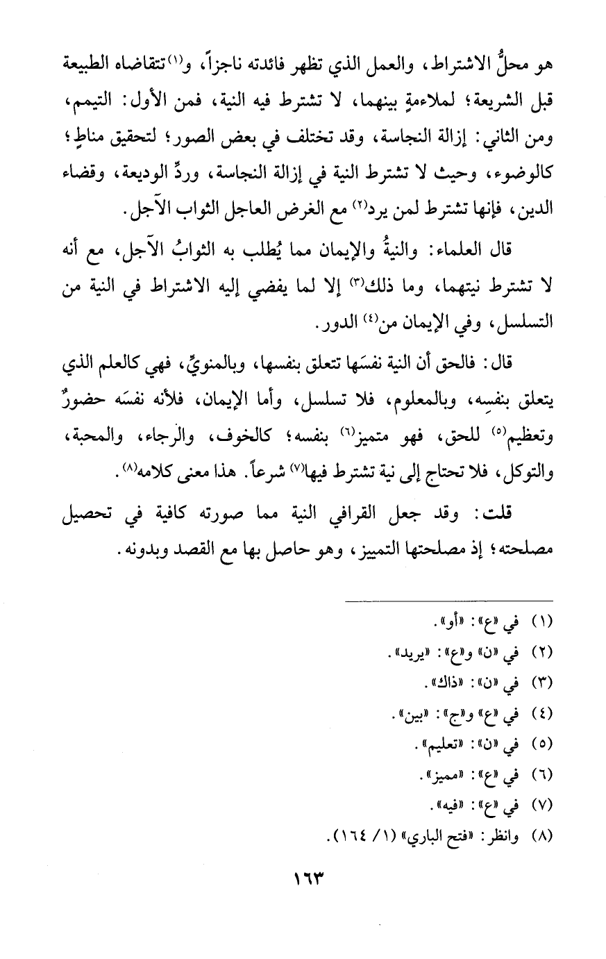 قال العلماء: والنيةُ والإيمان مما يُطلب به الثوابُ الآجل، مع أنه لا تشترط نيتهما، وما ذلك (¬3) إلا لما يفضي إليه الاشتراط في النية من التسلسل، وفي الإيمان من (¬4) الدور.