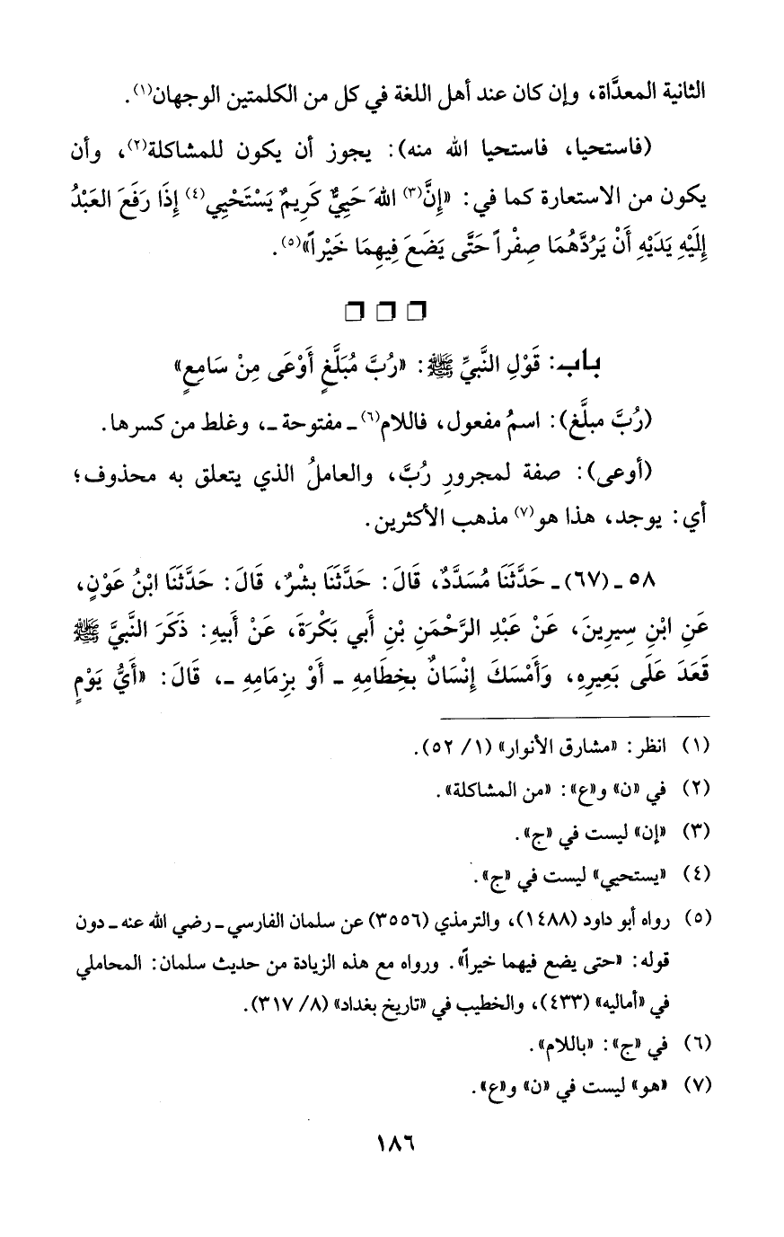 باب: قَوْلِ النَّبيِّ - صلى الله عليه وسلم -: "رُبَّ مُبَلَّغٍ أَوْعَى مِنْ سَامِعٍ"