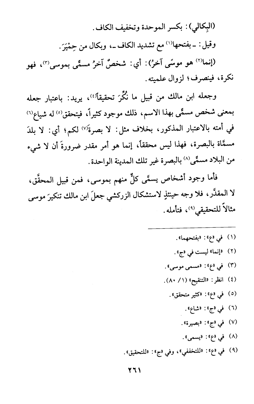 فأما وجود أشخاص يسمَّى كلٌّ منهم بموسى، فمن قبيل المحقَّق، لا المقدَّر، فلا وجه حينئذٍ لاستشكال الزركشي جعلَ ابن مالك تنكيرَ موسى مثالًا للتحقيقي (¬9)، فتأمله.