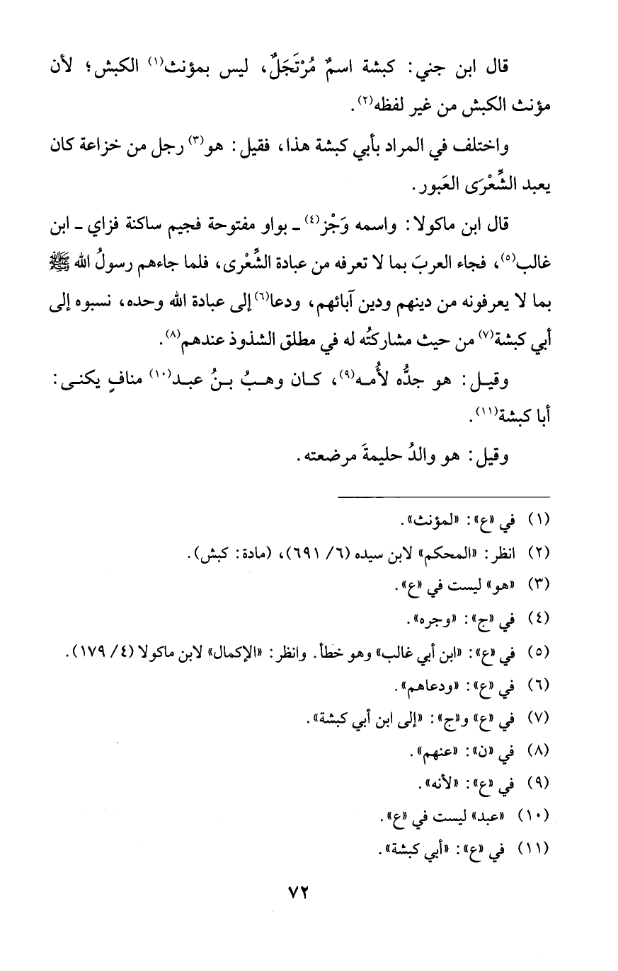 قال ابن ماكولا: واسمه وَجْز (¬4) -بواو مفتوحة فجيم ساكنة فزاي- ابن غالب (¬5)، فجاء العربَ بما لا تعرفه من عبادة الشِّعْرى، فلما جاءهم رسولُ الله - صلى الله عليه وسلم - بما لا يعرفونه من دينهم ودين آبائهم، ودعا (¬6) إلى عبادة الله وحده، نسبوه إلى أبي كبشة (¬7) من حيث مشاركتُه له في مطلق الشذوذ عندهم (¬8).