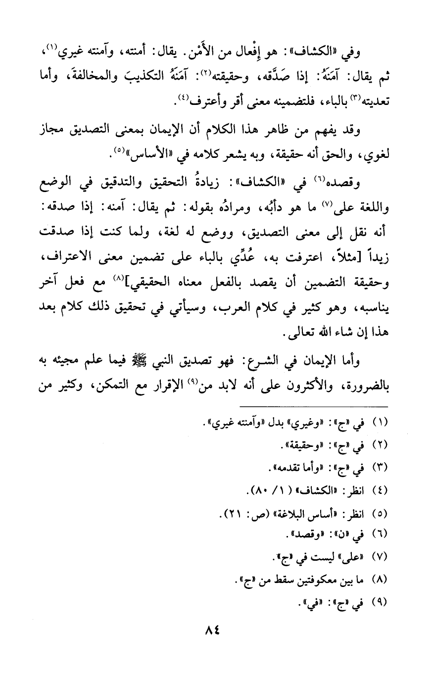 وقد يفهم من ظاهر هذا الكلام أن الإيمان بمعنى التصديق مجاز لغوي، والحق أنه حقيقة، وبه يشعر كلامه في "الأساس" (¬5).