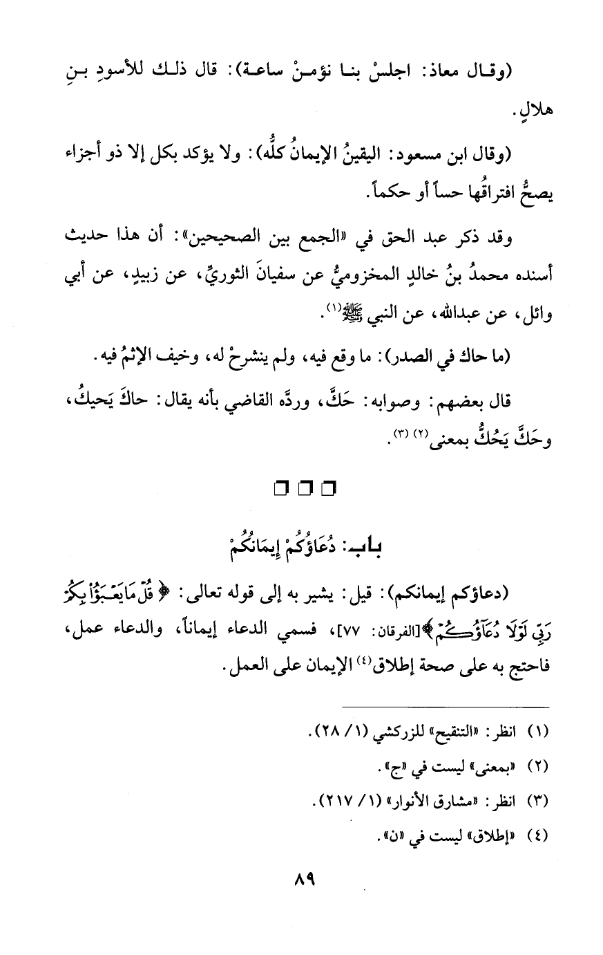 باب: دُعَاؤُكُمْ إِيمَانُكُمْ