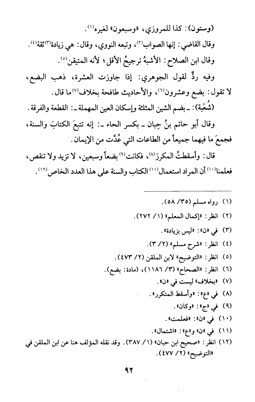 قال: وأسقطتُ المكررَ (¬8)، فكانت (¬9) بضعًا وسبعين، لا تزيد ولا تنقص، فعلمنا (¬10) أن المراد استعمال (¬11) الكتاب والسنة على هذا العدد الخاص (¬12).