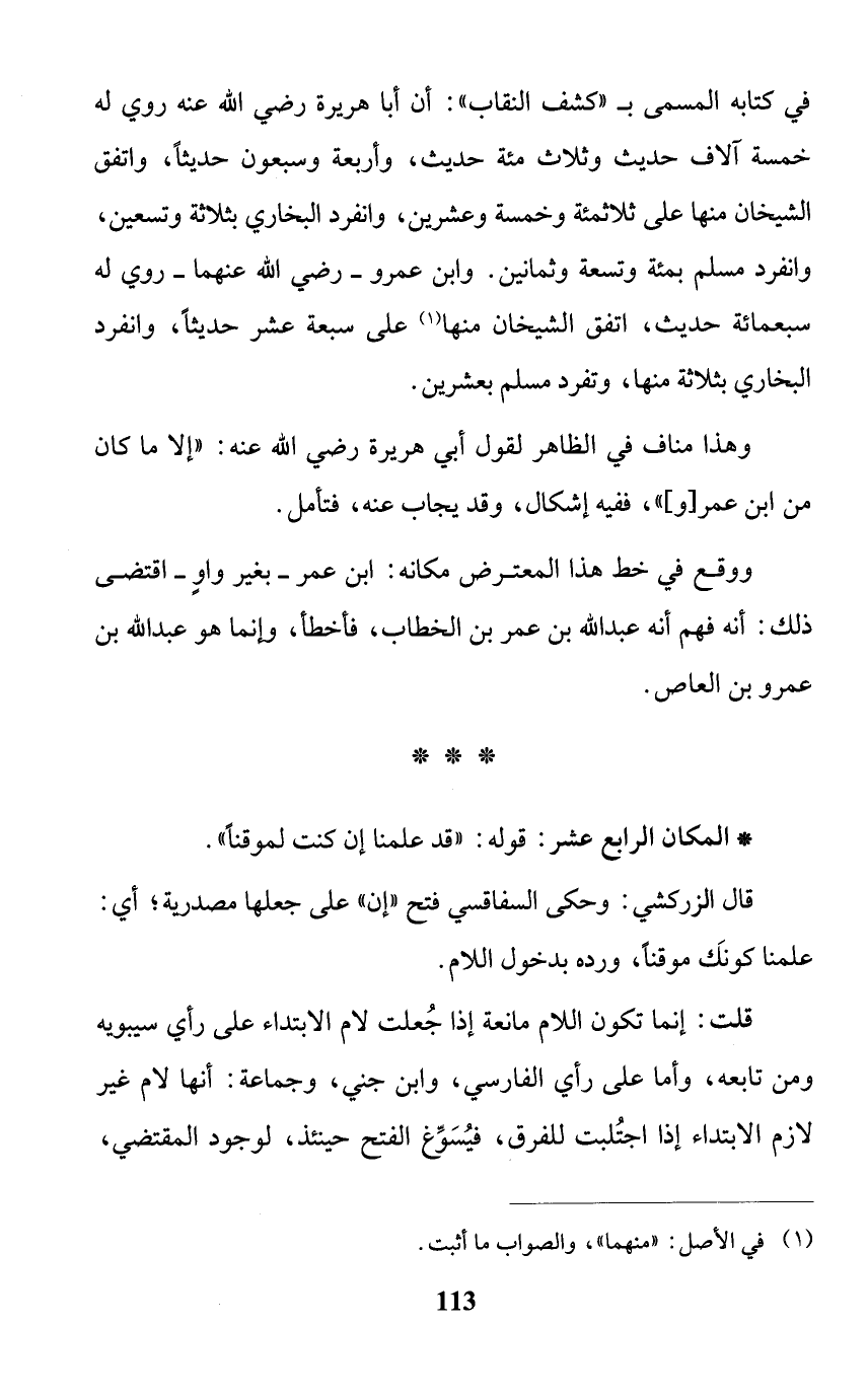 ووقع في خط هذا المعترض مكانه: ابن عمر -بغير واوٍ- اقتضى ذلك: أنه فهم أنه عبد الله بن عمر بن الخطاب، فأخطأ، وإنما هو عبد الله بن عمرو بن العاص.