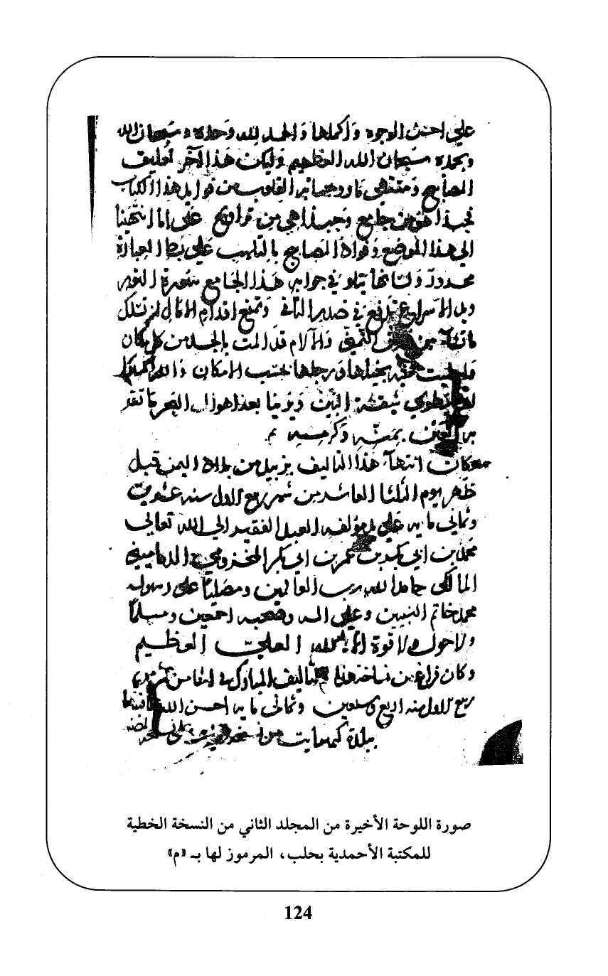 صورة اللوحة الأخيرة من المجلد الثاني من النسخة الخطية للمكتبة الأحمدية بحلب، المرموز لها بـ "م"