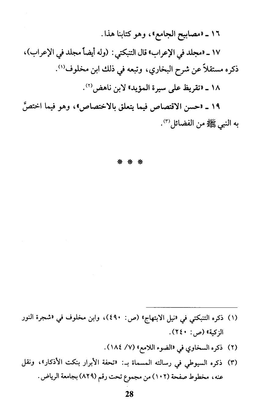 (¬3) ذكره السيوطيّ في رسالته المسماة بـ: "تحفة الأبرار بنكت الأذكار"، ونقل عنه، مخطوط صفحة (102) من مجموع تحت رقم (829) بجامعة الرياض.