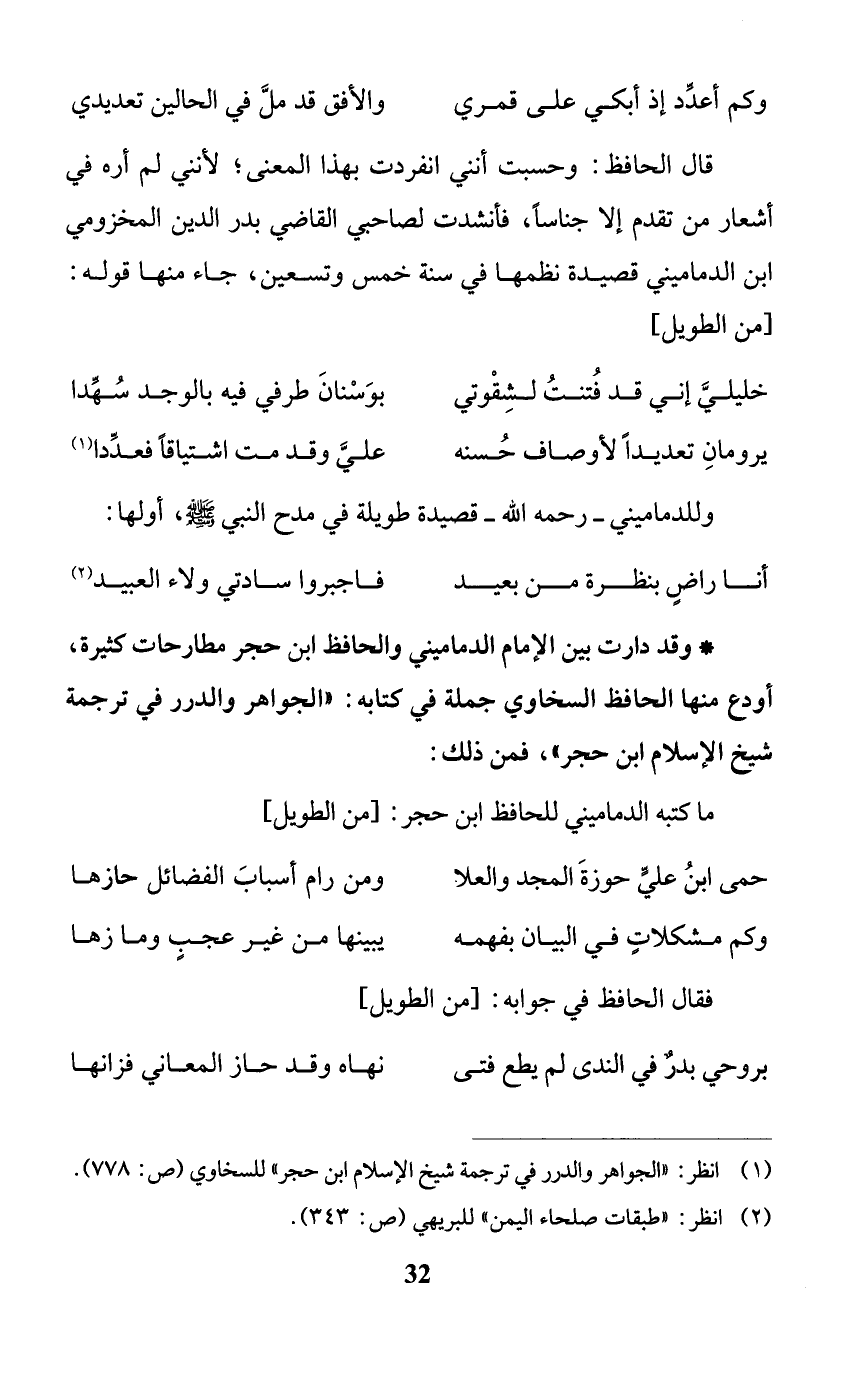 ما كتبه الدماميني للحافظ ابن حجر: [من الطَّويل]