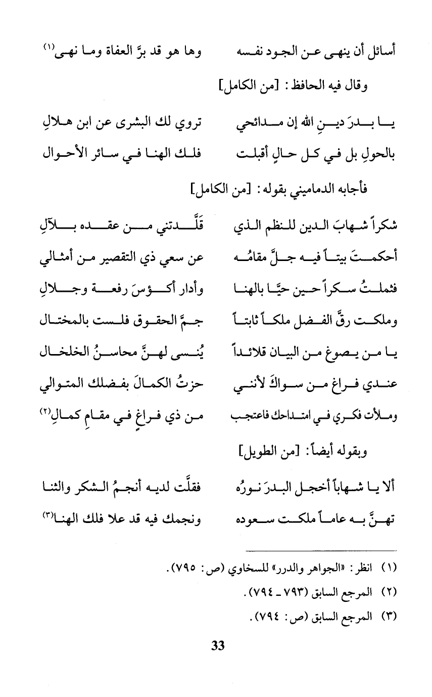 فأجابه الدماميني بقوله: [من الكامل]