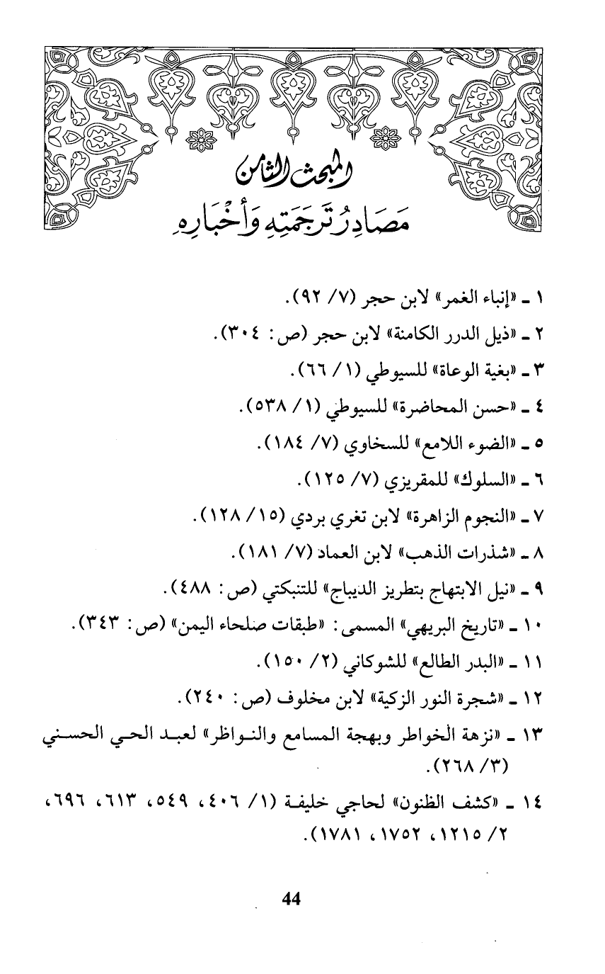 المبحث الثامن مَصَادِرُ تَرجَمَتِهِ وَأخْبَارِهِ