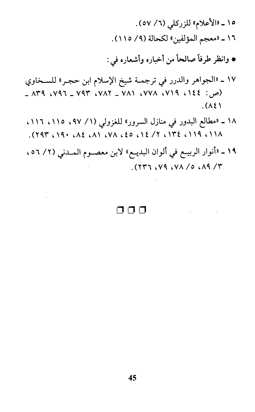 18 - "مطالع البدور في منازل السرور" للغزولي (1/ 97، 115، 116، 118، 119،134، 2/ 14، 45، 78، 81، 84، 190، 293).