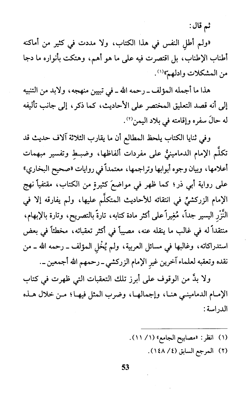 "ولم أطلِ النفس في هذا الكتاب، ولا مددت في كثير من أماكنه أطناب الإطناب، بل اقتصرت فيه على ما هو أهم، وهتكت بأنواره ما دجا من المشكلات وادلهمّ" (¬1).