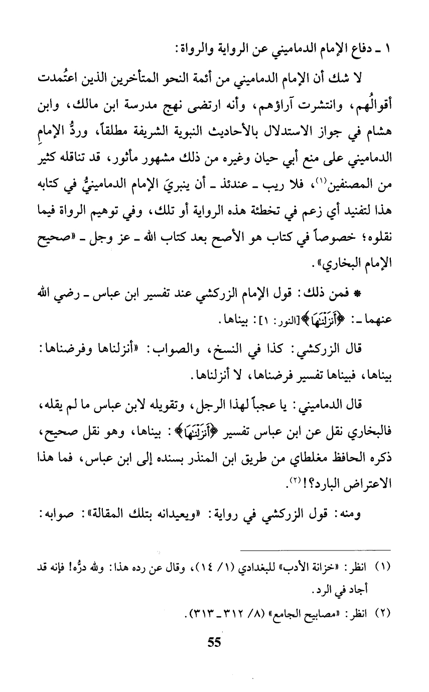 1 - دفاع الإمام الدماميني عن الرواية والرواة: