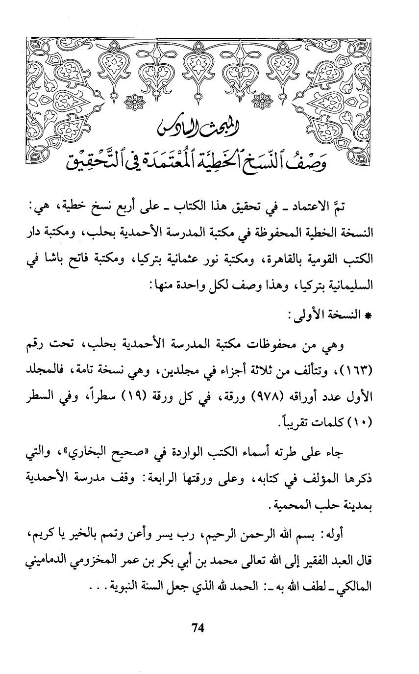 المبحث السادس وَصْفُ النُّسَخ الخَطِيَّة المُعْتَمَدَةُ في التَّحقِيق