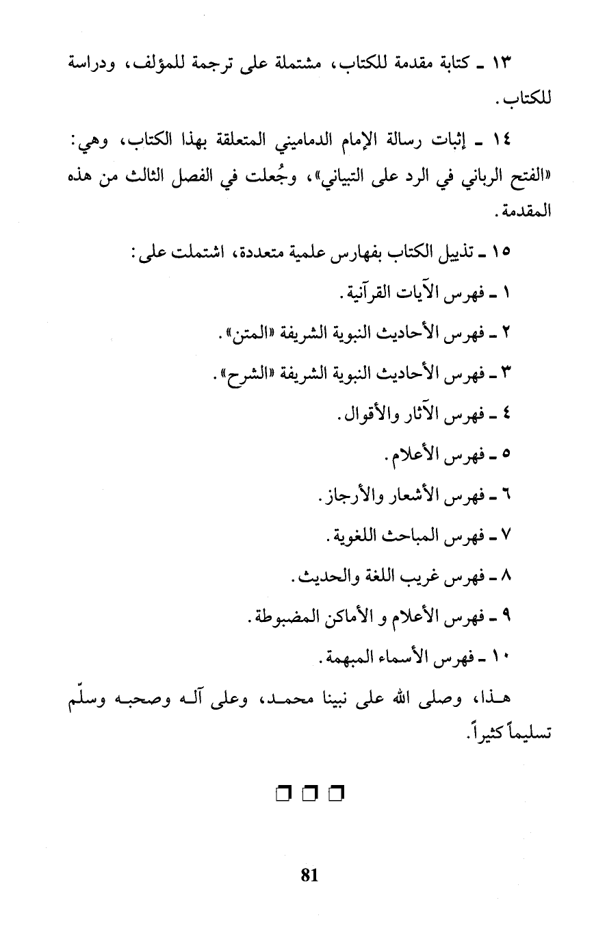 14 - إثبات رسالة الإمام الدماميني المتعلقة بهذا الكتاب، وهي: "الفتح الرباني في الرد على التبياني"، وجُعلت في الفصل الثالث من هذه المقدمة.