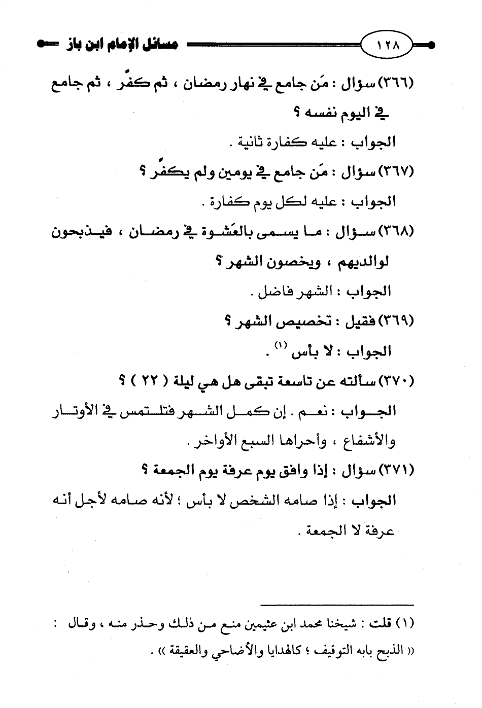 370 - سألته عن تاسعة تبقى هل هي ليلة (22)؟