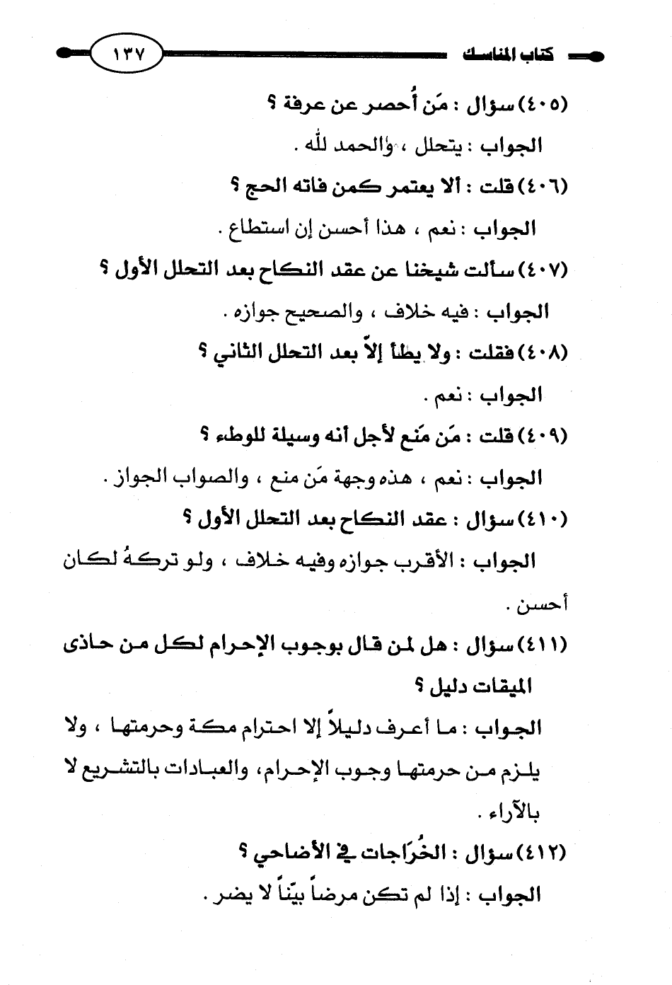 407 - سألت شيخنا من عقد النكاح بعد التحلل الأول؟