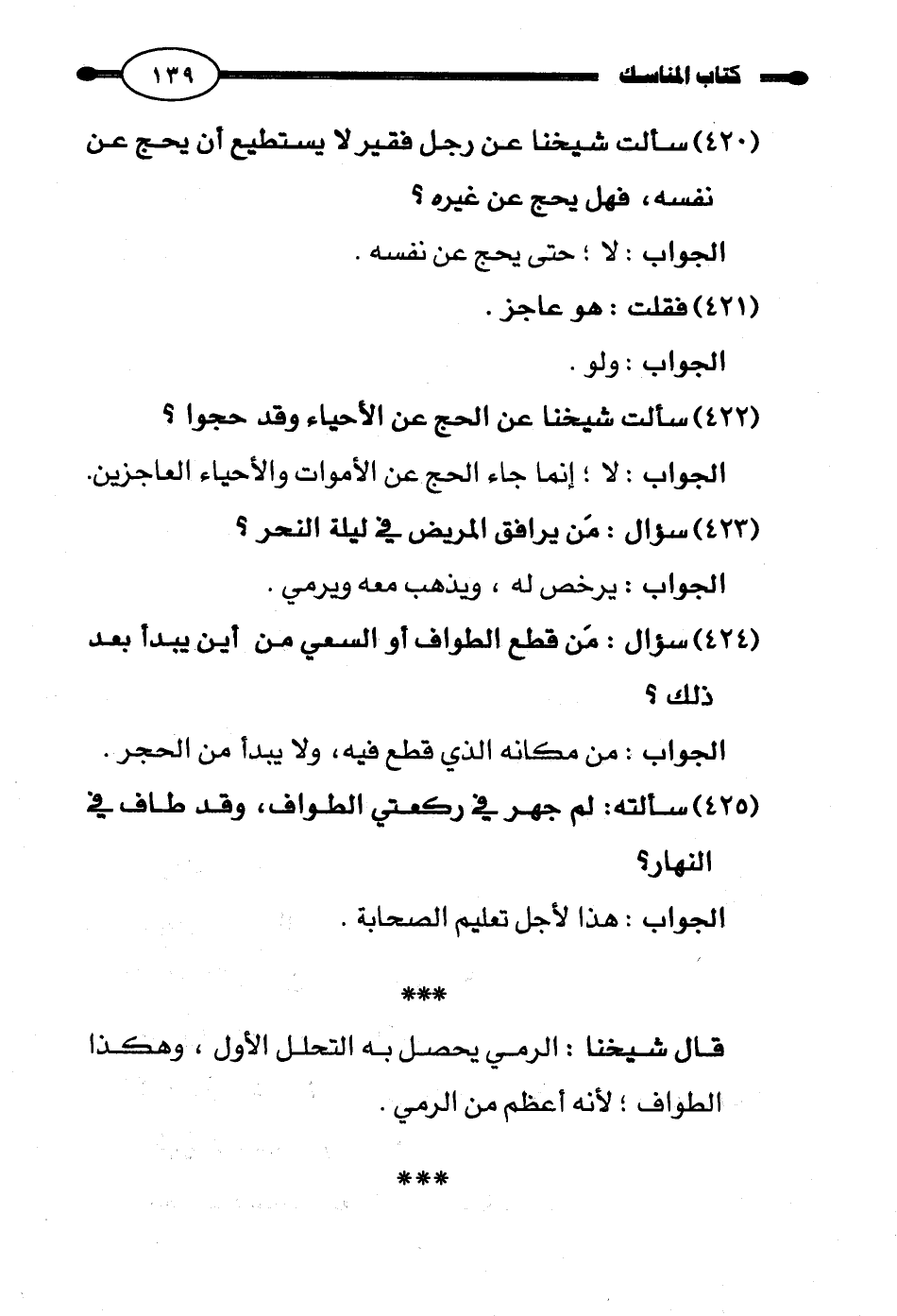 420 - سألت شيخنا عن رجل فقير لا يستطيع أن يحج عن نفسه، فهل يحج عن غيره؟
