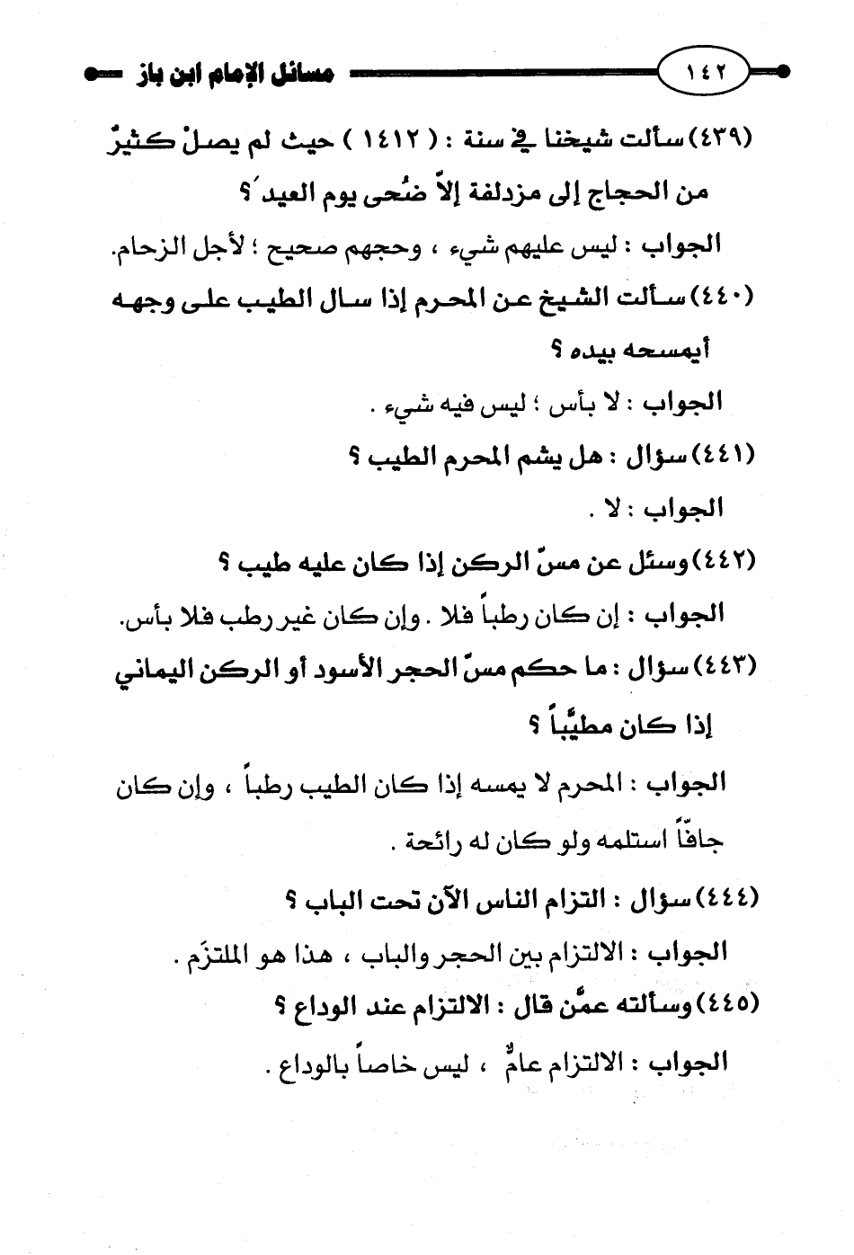 439 - سألت شيخنا في سنة: (1412) حيث لم يصلْ كثير من الحجاج إلى مزدلفة إلا ضُحى يوم العيد؟