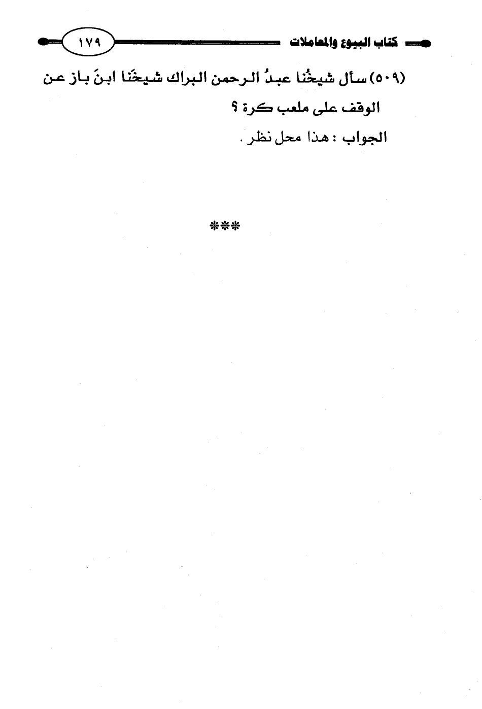 509 - سأل شيخُنا عبدُ الرحمن البراك شيخَنا ابنَ باز عن الوقف على ملعب كرة؟