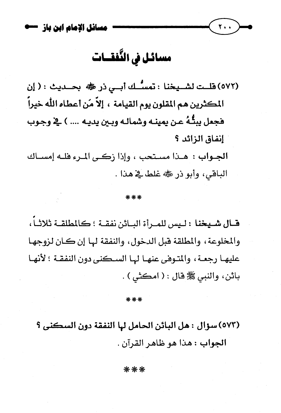 572 - قلت لشيخنا: تمسّك أبي ذر - رضي الله عنه - بحديث: (إن المكثرين هم المقلّون يوم القيامة، إلّا مَن أعطاه الله خيرًا فجعل بيتّه عن يمينه وشماله وبين يديه. ..) في وجوب إنفاق الزائد؟