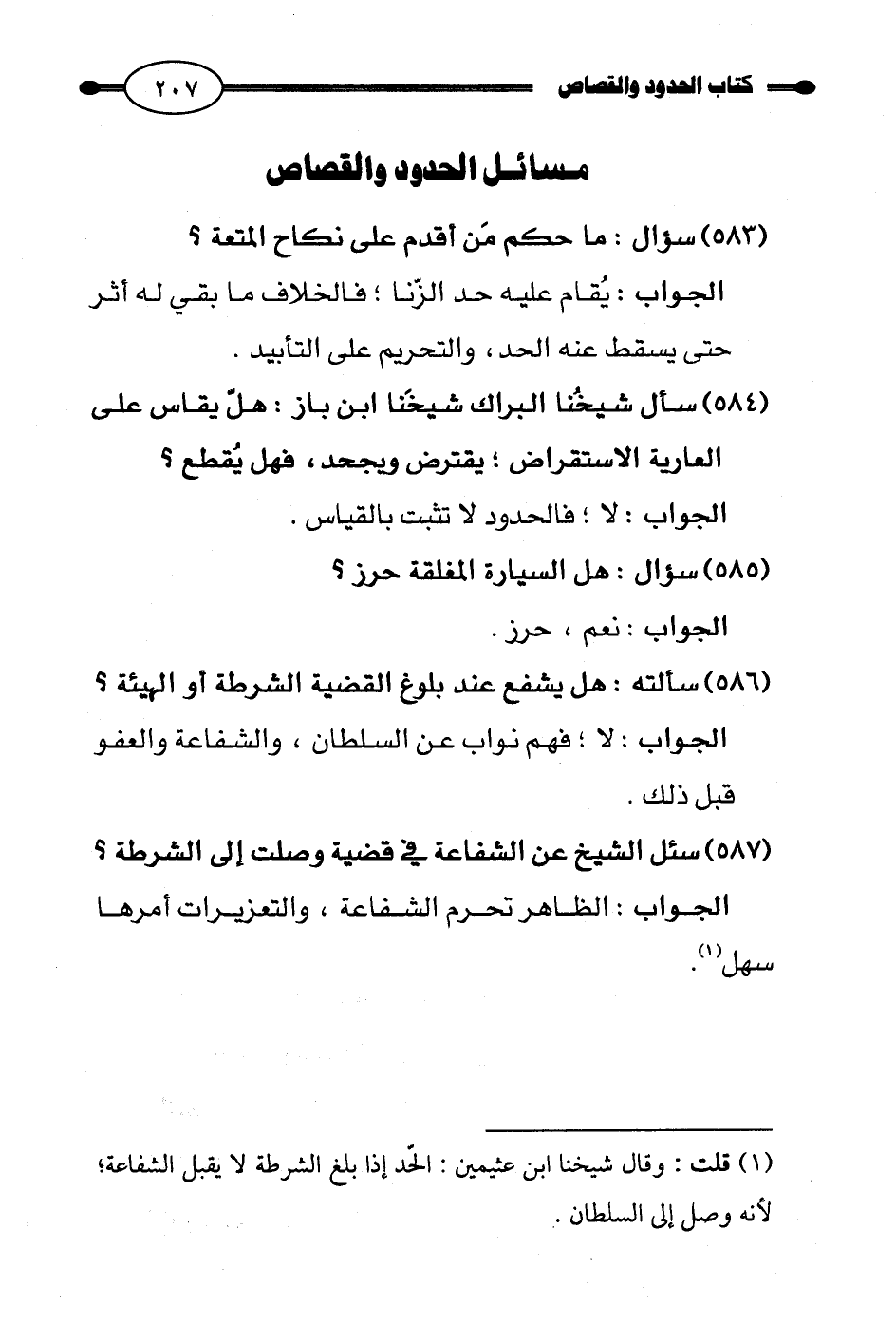(¬1) قلت: وقال شيخنا ابن عثيمين: الحدّ إذا بلغ الشرطة لا يقبل الشفاعة؛ لأنه وصل إلى السلطان.