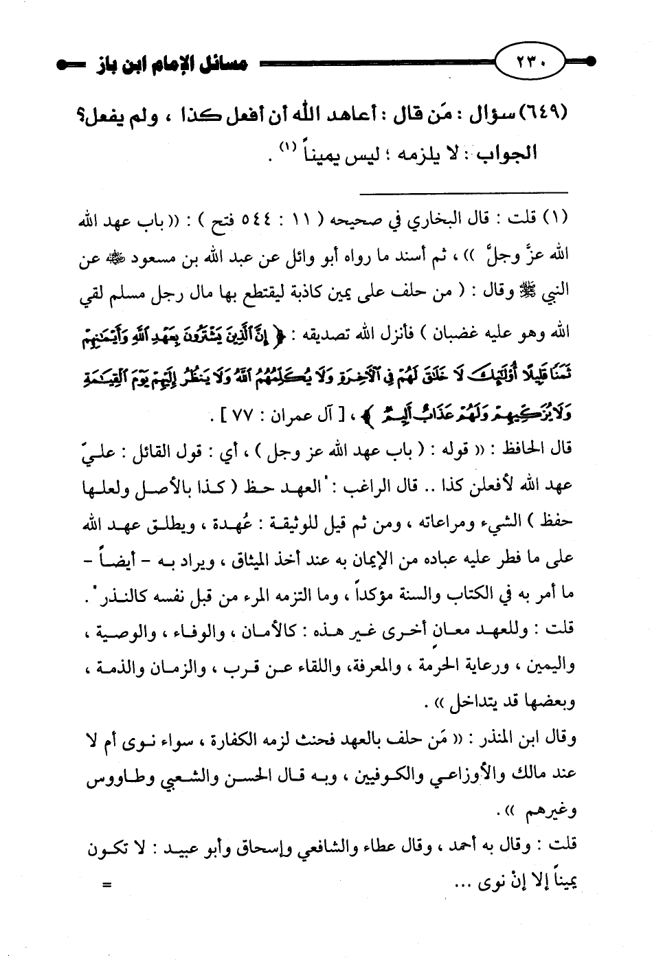 649 - سؤال: مَن قال: أعاهد الله أن أفعل كذا، ولم يفعل؟