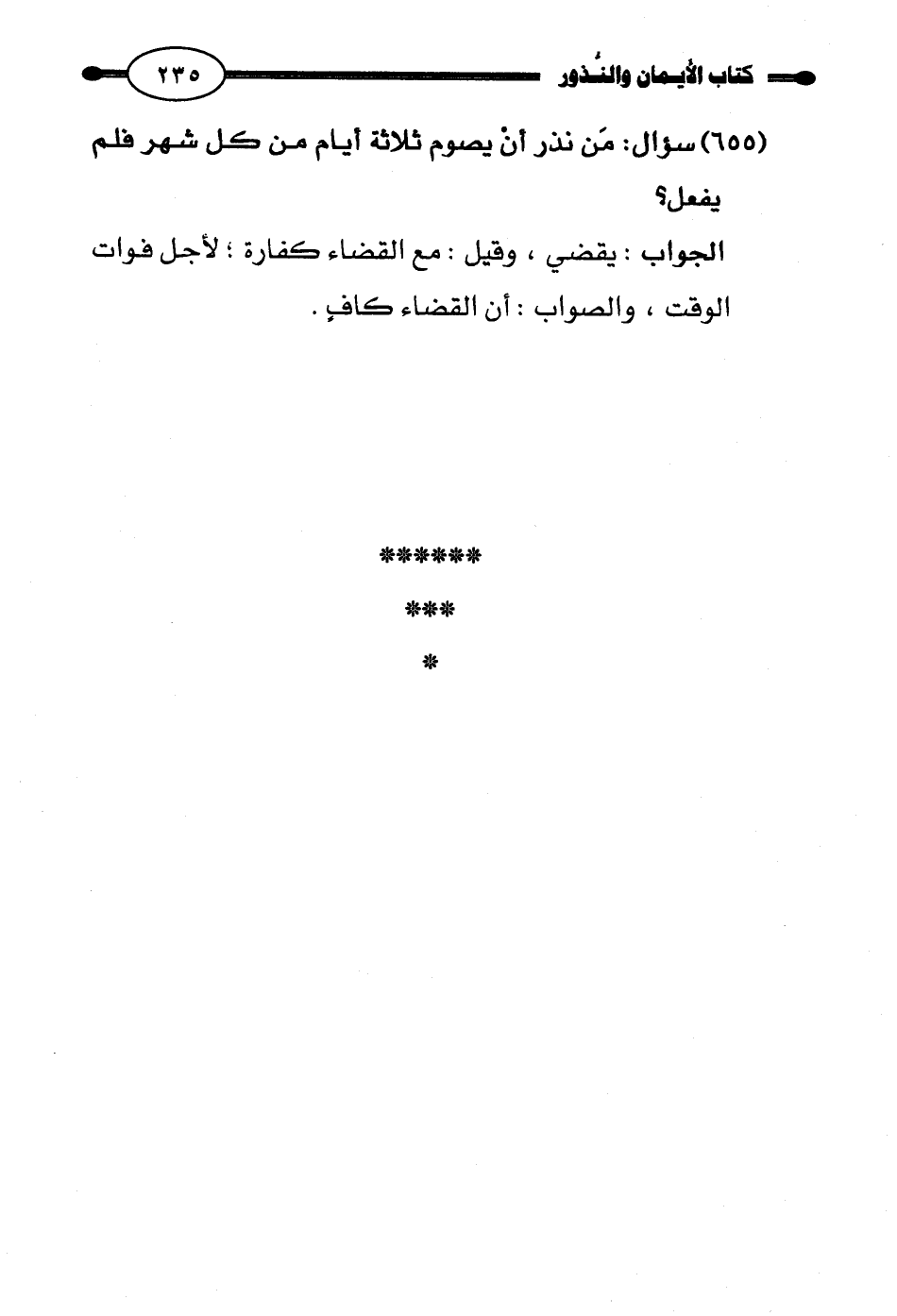 655 - سؤال: مَن نذر أن يصوم ثلاثة أيام من كل شهر فلم يفعل؟