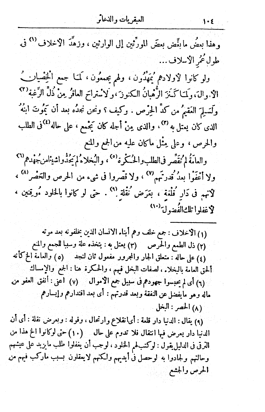 وهذا بعض ما بغَّض بعضَ المورثين إلى الوراثين، وزهّد الأخلاف في طول عمر الأسلاف. . .
