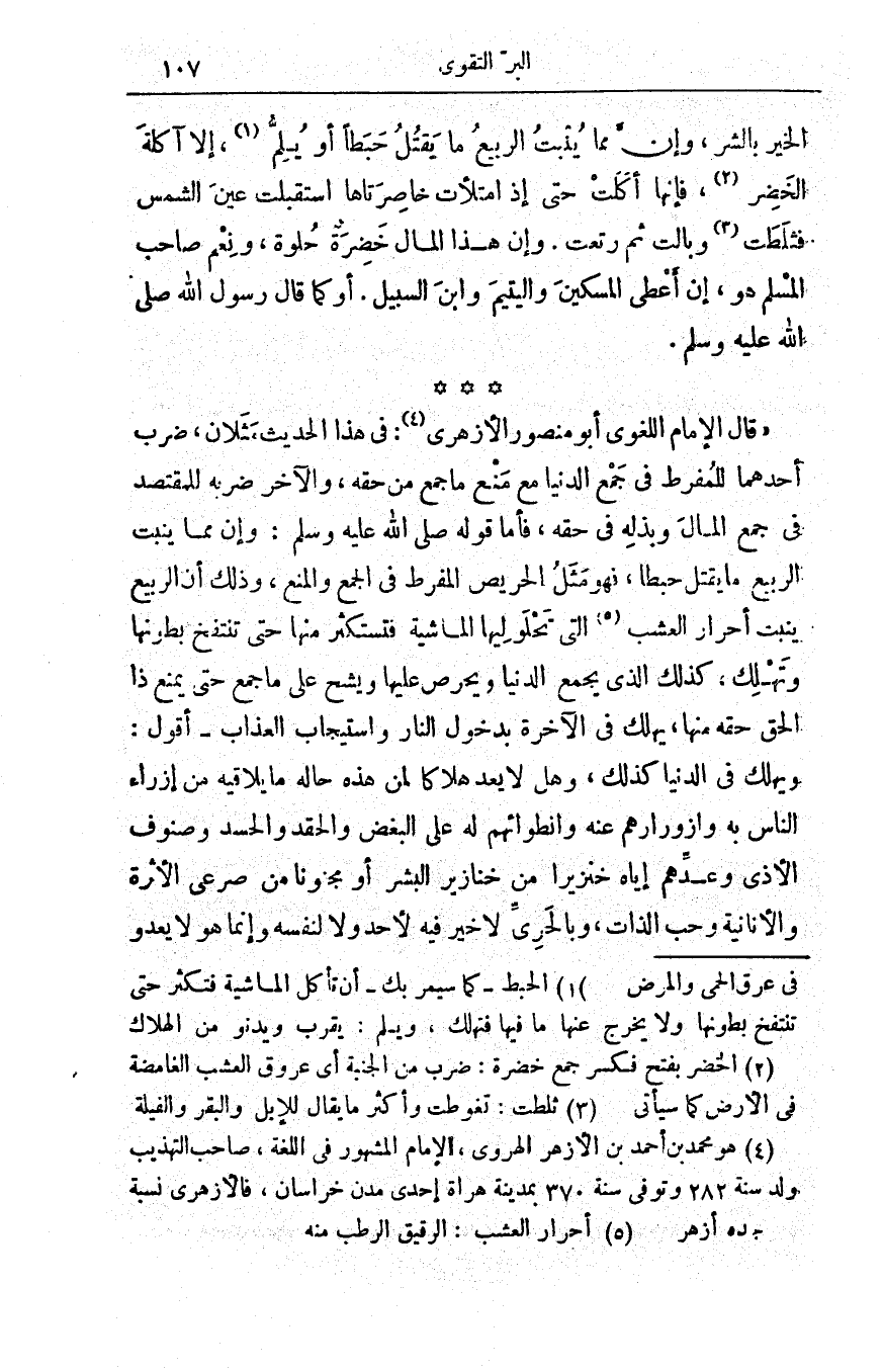 فأما قوله صلى الله عليه وسلم: وإنّ مما ينبت الربيع ما يقتل حَبطاً، فهو مثلُ الحريصِ المفرطِ في الجمع والمنع، وذلك أنّ الربيعَ ينبت أحرار العشب التي تحلوليها الماشية فتستكثر منها حتى تنتفخ بطونها وتهلك، كذلك الذي يجمع الدنيا ويحرص عليها ويشحُّ على ما جمع حتى يمنع ذا الحقّ حقَّه منها، يهلك في الآخرة بدخول النار واستيجاب العذاب - أقول: ويهلك في الدنيا كذلك، وهل لا يعدُّ هلاكاً لمن هذه حالُه ما يلاقيه من إزراءِ الناسِ به وازوِرارِهم عنه وانطوائِهم له على البغضِ والحقدِ والحسدِ وصنوفِ الأذى وعدّهم إيّاه خنزيراً من خنازيرِ البشر أو مجنوناً من صرعى الأثرة والأنانية وحبِّ الذات، وبالحريّ لا خير فيه لأحد ولا لنفسه وإنما هو لا يعدو