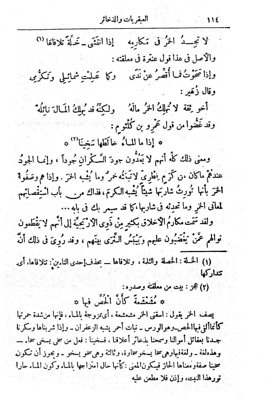 ومعنى ذلك كلّه أنهم لا يعدّون جودَ السكرانِ جوداً، وإنّما الجود عندهم ما كان من كرمٍ فطريٍّ لا تبعثه خمرٌ وما يشبه الخمرَ. وإذا هم وصفوا الخمرَ بأنها تورث شاربَها شيئاً يشبه الكرم، فذاك من باب استقصائهم لمعاني الخمرِ وما تحدثه في شاربِها، كما قد سيمرُّ بك في بابه. . .